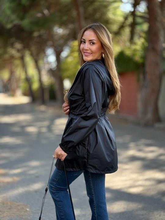 Kadın Kapüşon Ve Büzgü Detay Yağmurluk