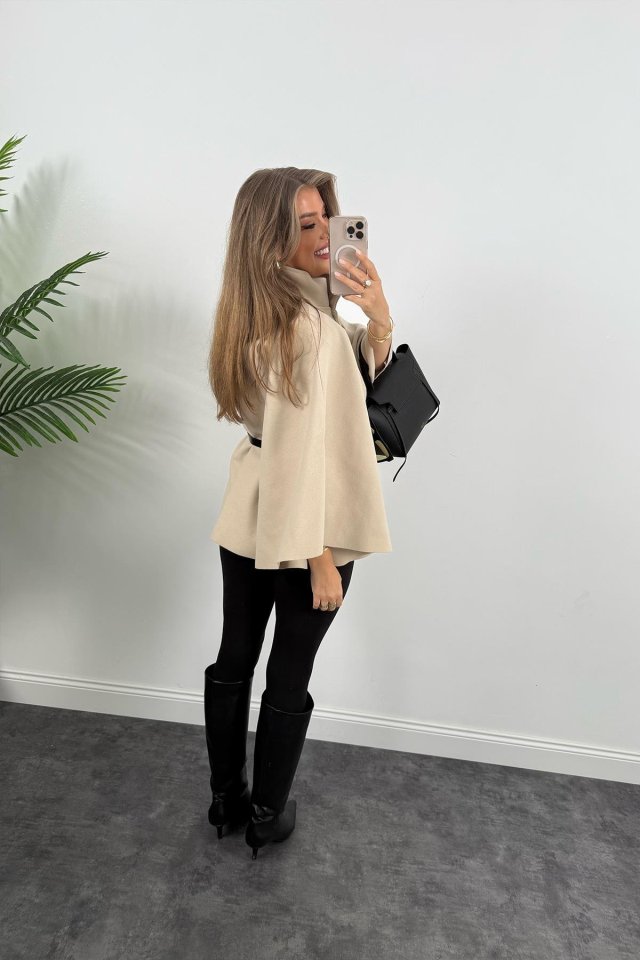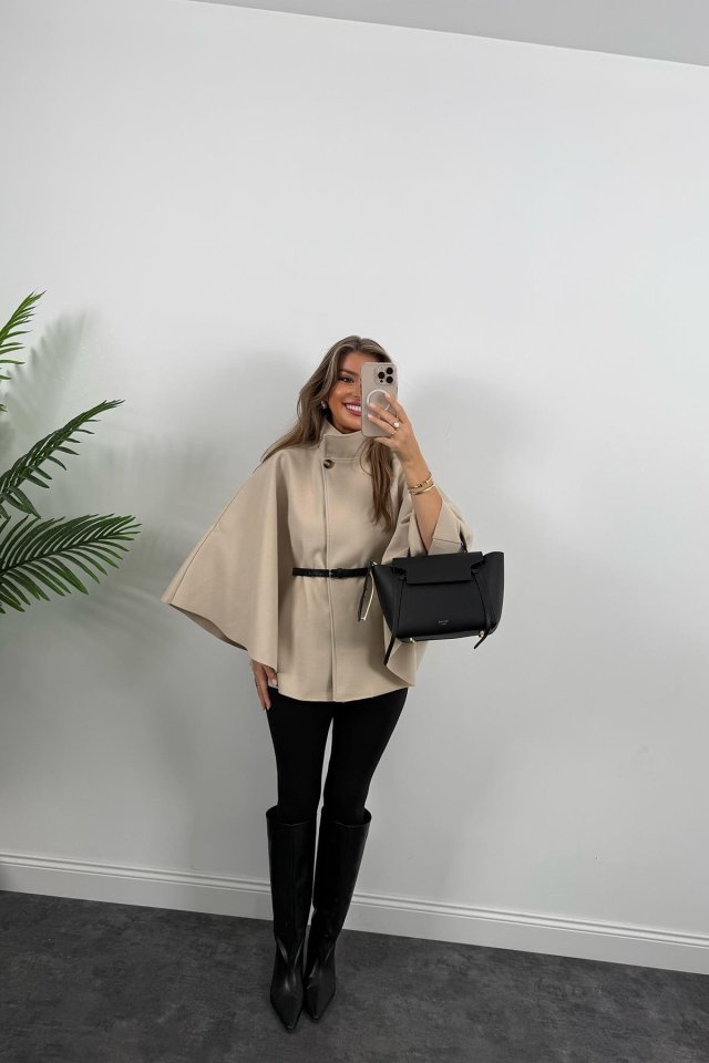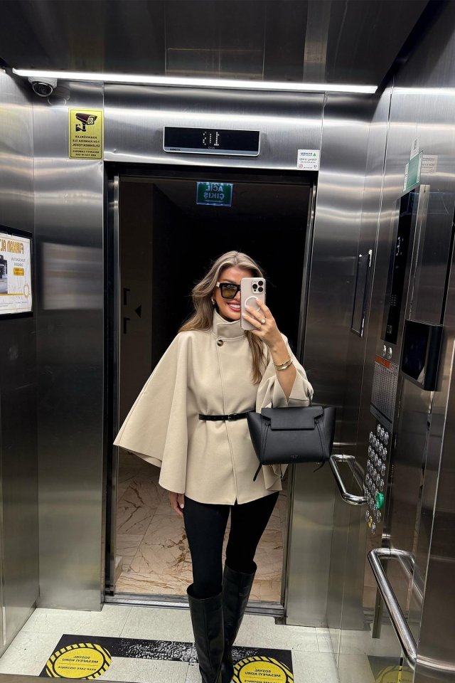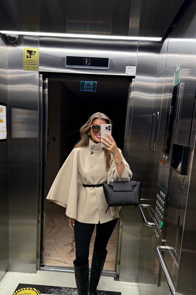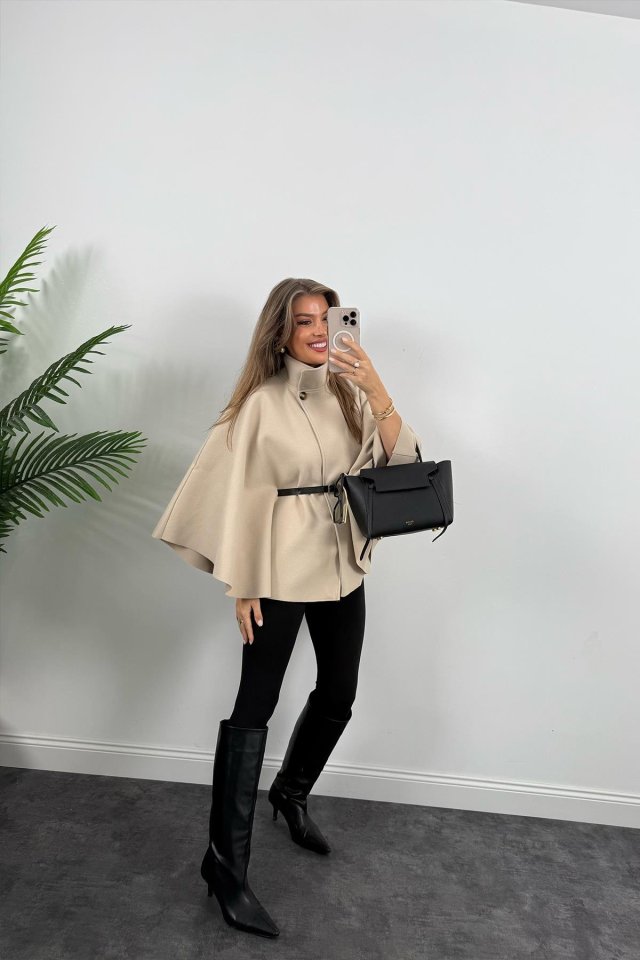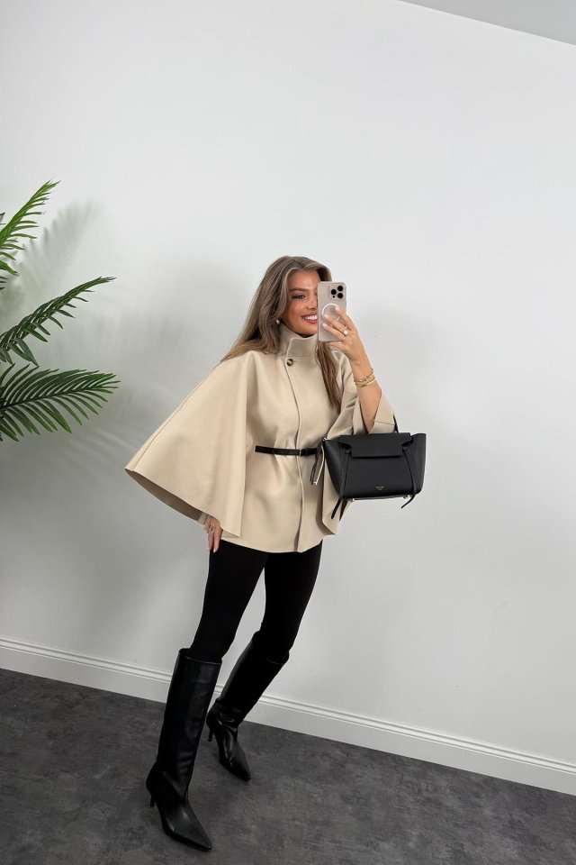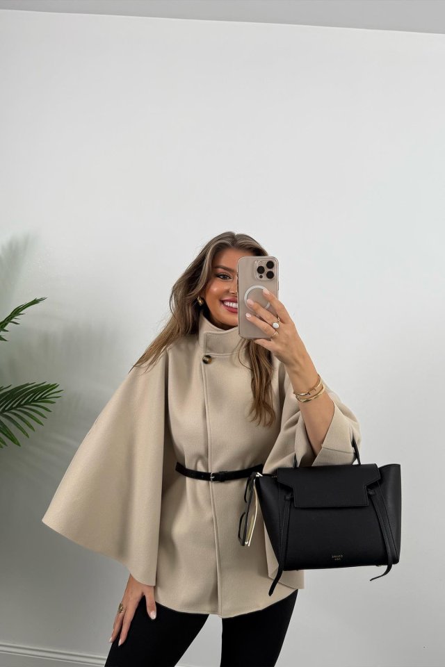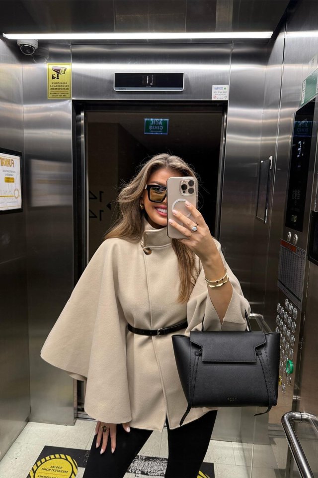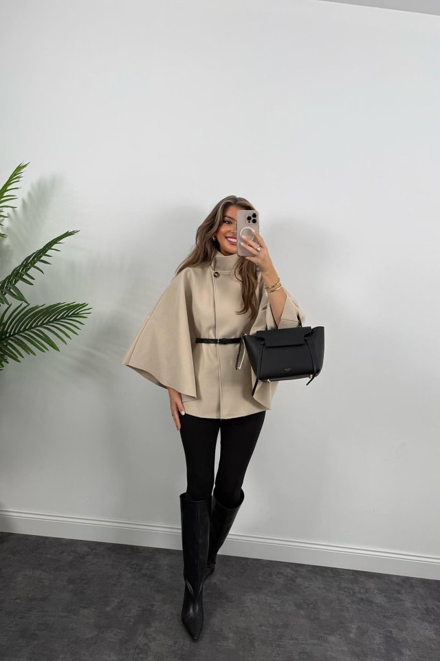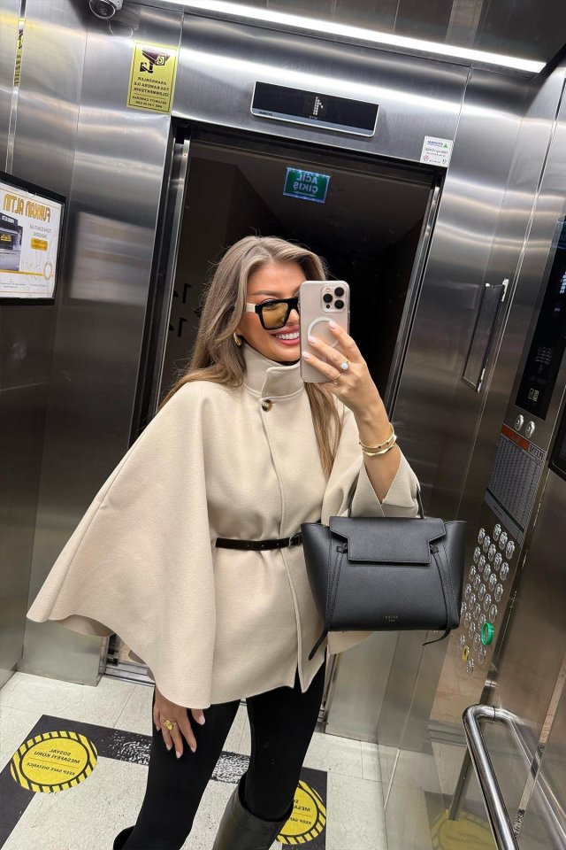 Kadın Yara Kol Balıkçı Yaka Kemer Dahil Kaşe Kaban